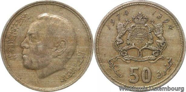 R7551 Morocco 50 Santimat Hassan II AH 1394 1974 -> Make offer