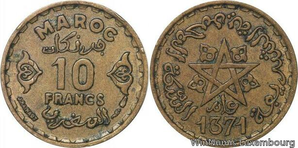 R7552 Morocco 10 Francs Mohammed V AH 1371 1952 Paris -> Make offer