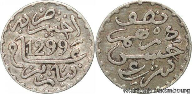 R7557 Morocco 1/2 Dirham Hassan Ier AH 1299 1882 Silver Paris -> Make offer