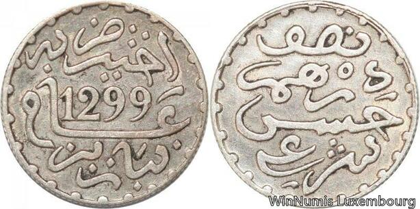 R7558 Morocco 1/2 Dirham Hassan Ier AH 1299 1882 Silver Paris -> Make offer