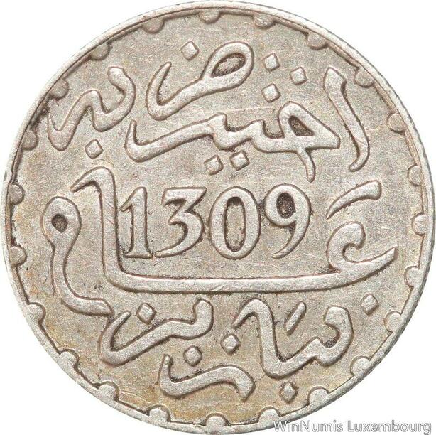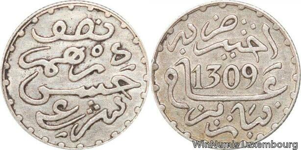 R7560 Morocco 1/2 Dirham Hassan Ier AH 1309 1892 Silver Paris -> Make offer