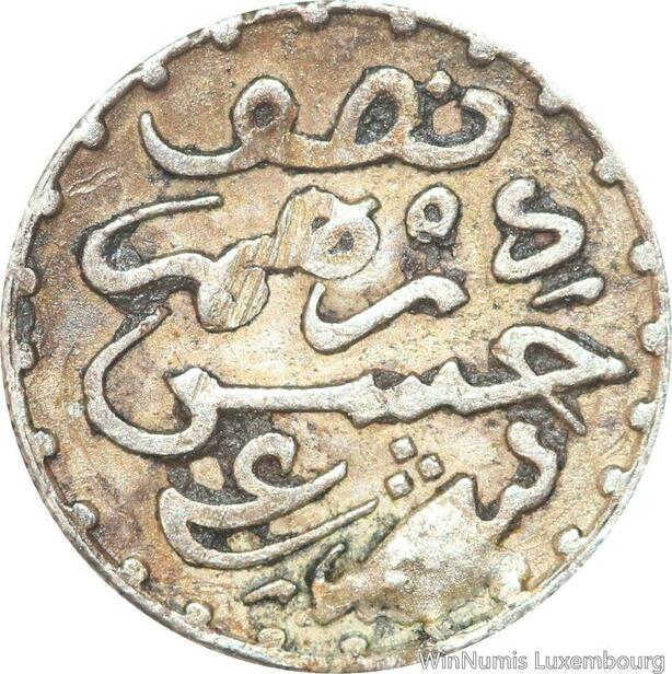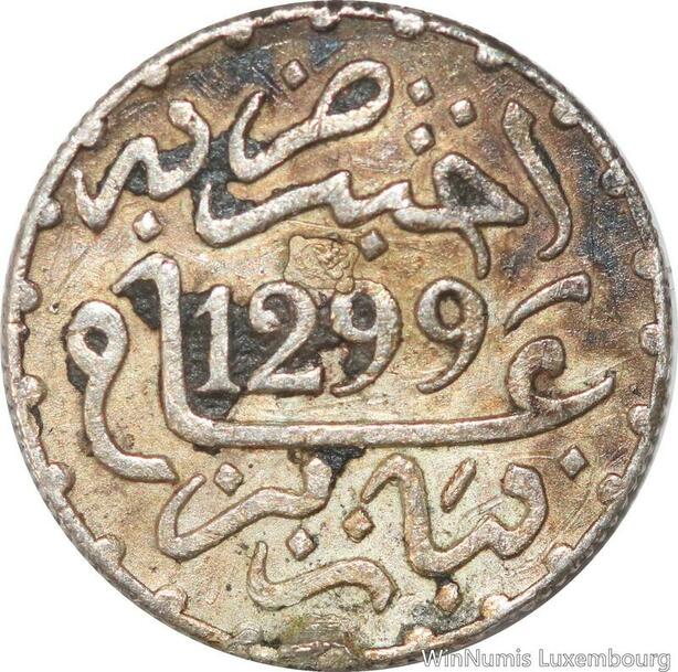 R7561 Morocco 1/2 Dirham Hassan Ier AH 1299 1882 Countermark Ram Belier Silver