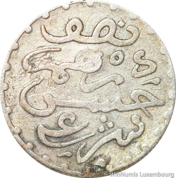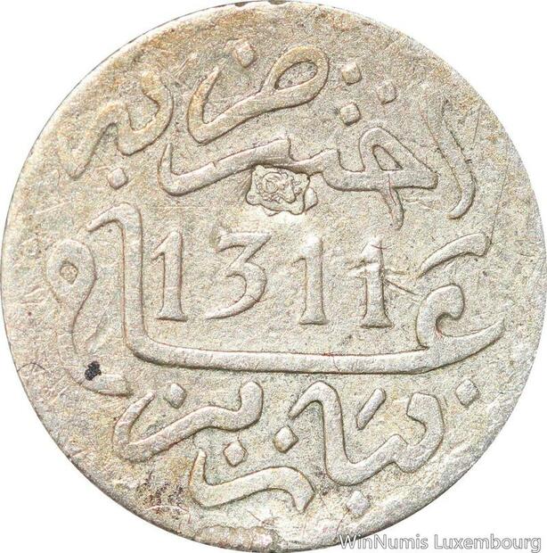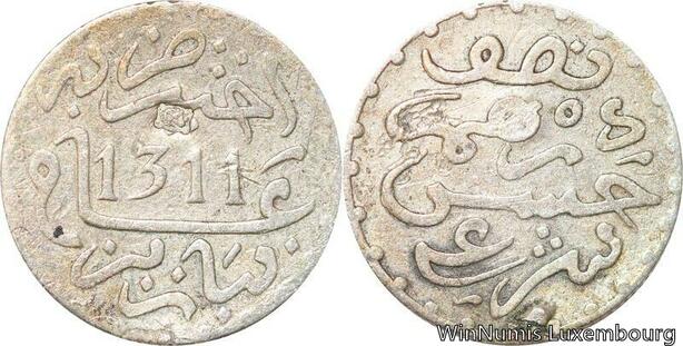 R7562 Morocco 1/2 Dirham Hassan Ier AH 1311 1894 Countermark Ram Belier Silver