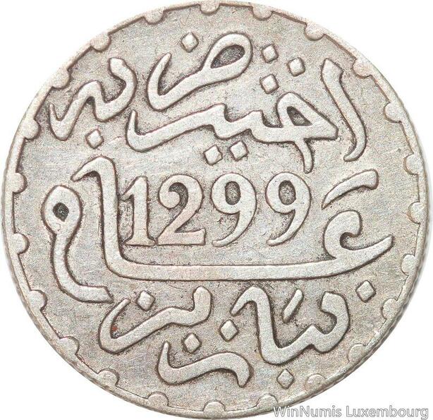 R7563 Morocco 1/2 Dirham Hassan Ier AH 1299 1882 Silver Paris -> Make offer