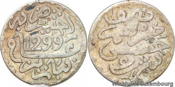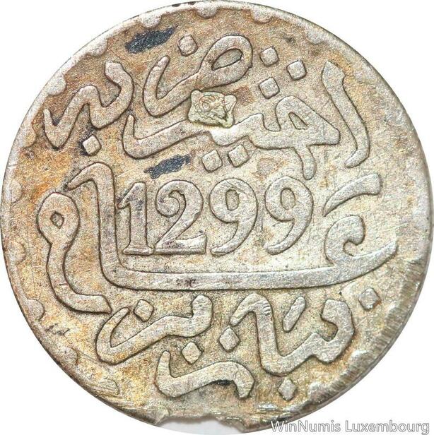 R7564 Morocco 1/2 Dirham Hassan Ier AH 1299 1882 Countermark Ram Belier Silver