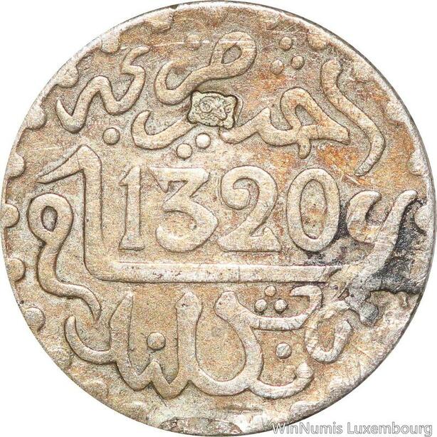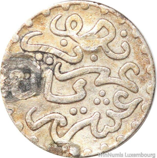 R7567 Morocco 1/2 Dirham Abd al-Aziz 1321 1903 Countermark Ram Belier Silver