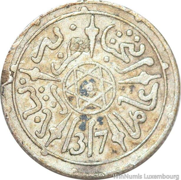 R7568 Morocco 1/2 Dirham Abd al-Aziz AH 1317 1900 Silver -> Make offer