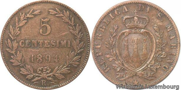 R7577 San Marino 5 Centesimi 1894 R Roma -> Make offer