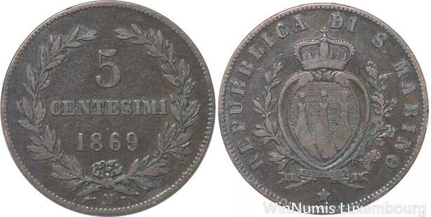 R7582 San Marino 5 Centesimi 1869 M Milan -> Make offer