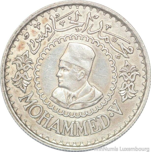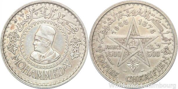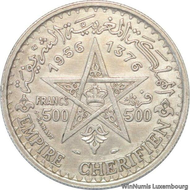 R7587 Morocco 500 Francs Mohammed V AH 1376 1956 Paris Silver AU -> Make offer