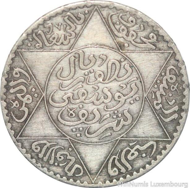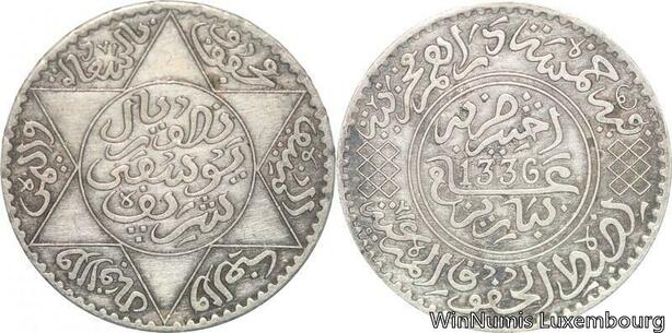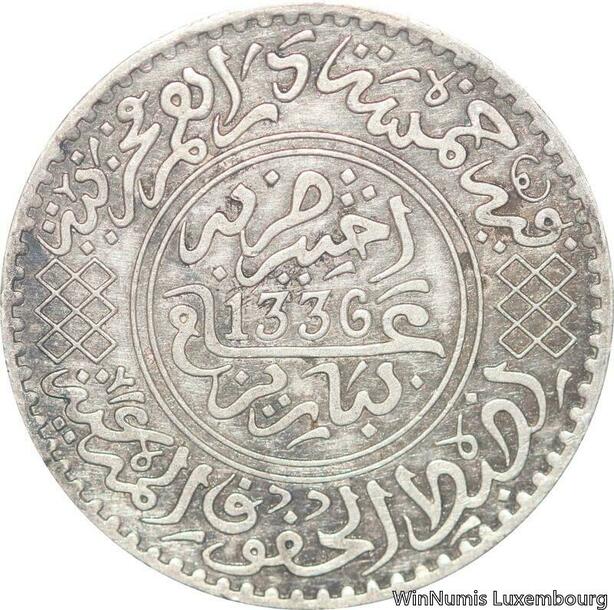 R7601 Morocco 5 Dirhams 1/2 Rial Yusuf AH 1336 1918 Paris Silver AU > Make offer