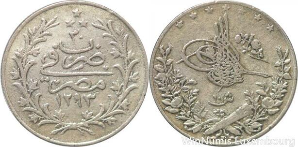 R7609 Egypt Old Counterfeit 10 Qirsh Abdul Hamid II AH 1293 /30 1904 H Heaton