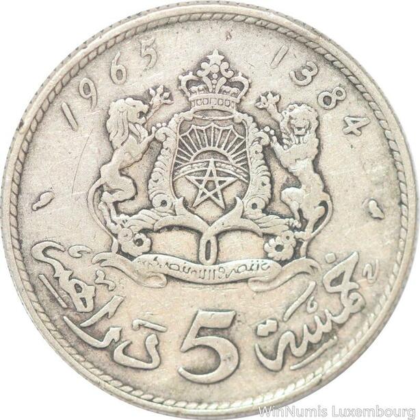 R7615 Morocco 5 Dirhams Hassan II AH 1384 1965 Silver -> Make offer