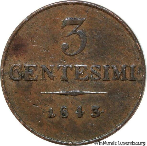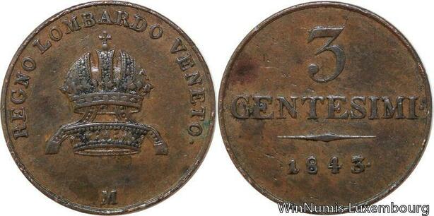 R7624 Italy Lombardia Venetia 3 Centesimi Franz Joseph I 1843 M Milan -> M Offer
