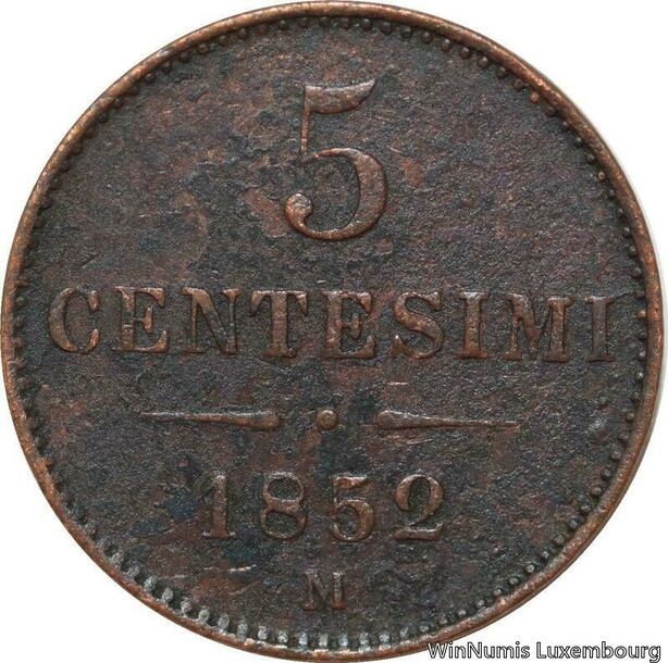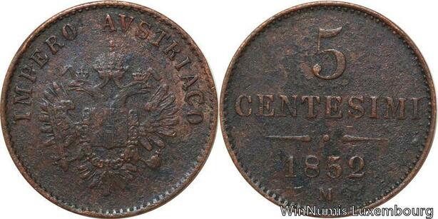 R7628 Italy Lombardia Venetia 5 Centesimi Franz Joseph I 1852 M Milan -> M Offer