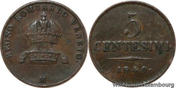 R7631 Italy Lombardia Venetia 5 Centesimi 1849 M Milan -> Make offer
