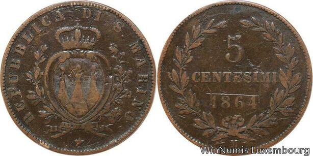 R7637 San Marino 5 Centesimi 1864 M Milan -> Make offer