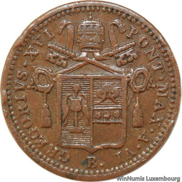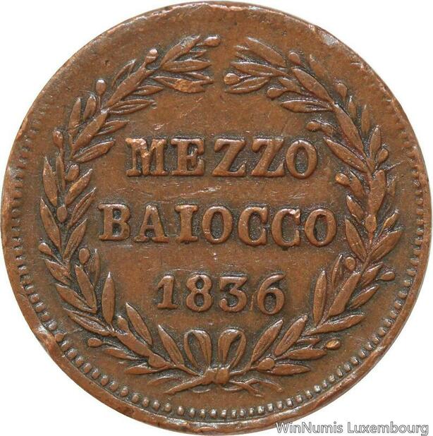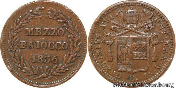 R7640 Vatican Papal States 1/2 Mezzo Baiocco Gregory XVI 1836 VI B -> Make offer