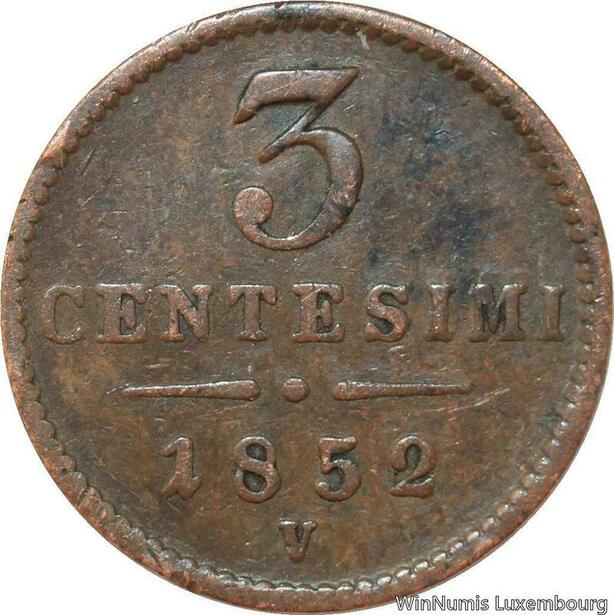 R7663 Italy Lombardy Venetia 3 Centesimi Franz Joseph I 1852 V Venice -> M Offer