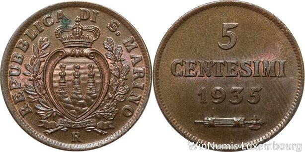 R7667 San Marino 5 Centesimi 1935 R Roma UNC -> Make offer