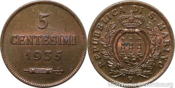 R7669 San Marino 5 Centesimi 1935 R Roma UNC -> Make offer