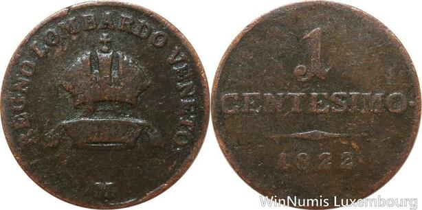 R7675 Italy Lombardia Venetia 1 Centesimo Ferdinand I 1822 M Milan -> Make offer