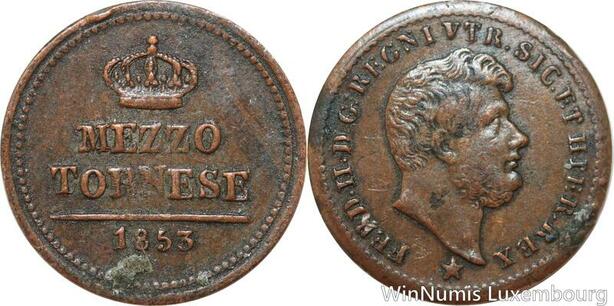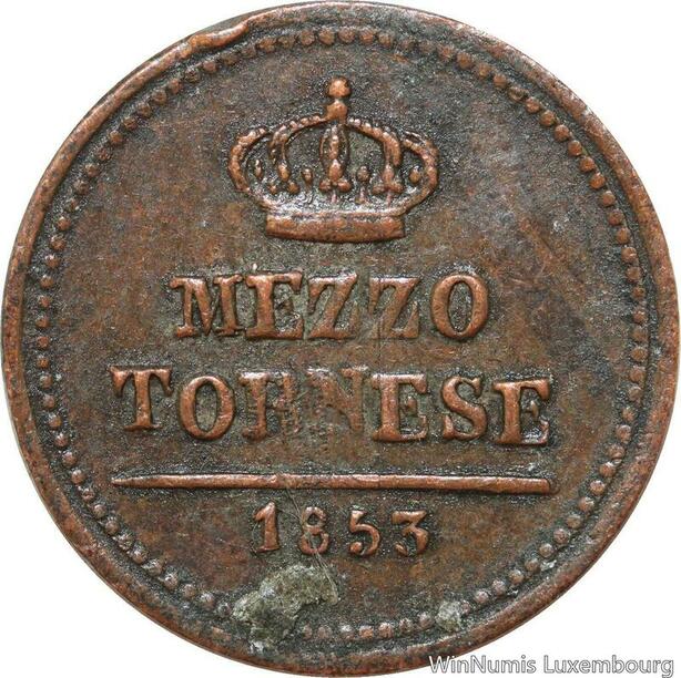 R7684 Italy Italian States Sicily Naples 1/2 Mezzo Tornese Ferdinando II 1853