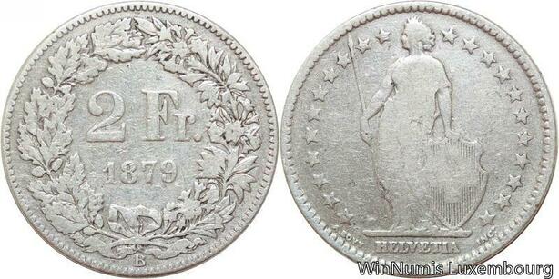 R7689 Switzerland 2 Francs Helvetia 1879 B Berne Silver -> Make offer