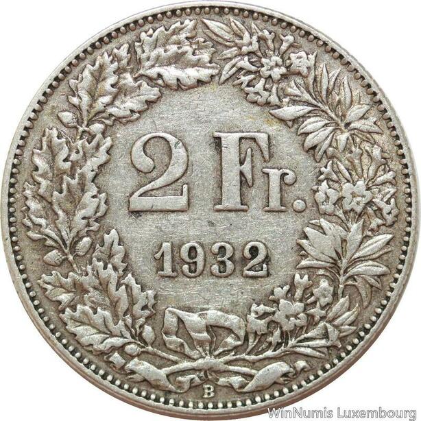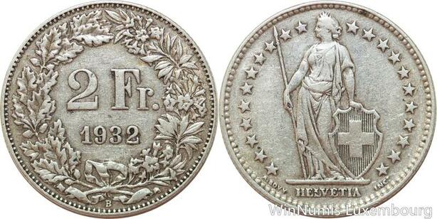 R7695 Switzerland 2 Francs Helvetia 1932 B Berne Silver -> Make offer