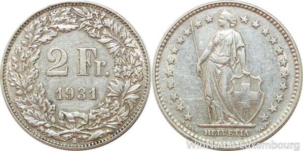 R7699 Switzerland 2 Francs Helvetia 1931 B Berne Silver -> Make offer