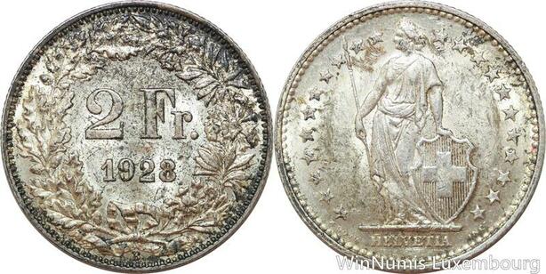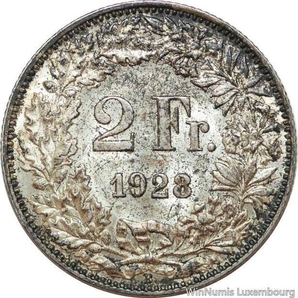 R7702 Switzerland 2 Francs Helvetia 1928 B Berne Silver AU -> Make offer