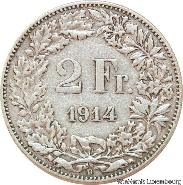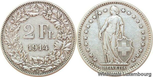 R7706 Switzerland 2 Francs Helvetia 1914 B Berne Silver -> Make offer