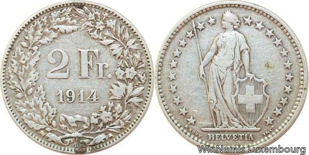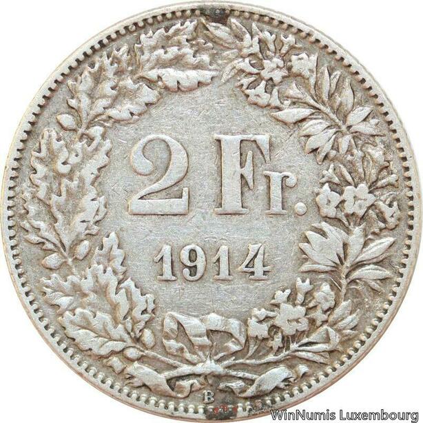 R7707 Switzerland 2 Francs Helvetia 1914 B Berne Silver -> Make offer