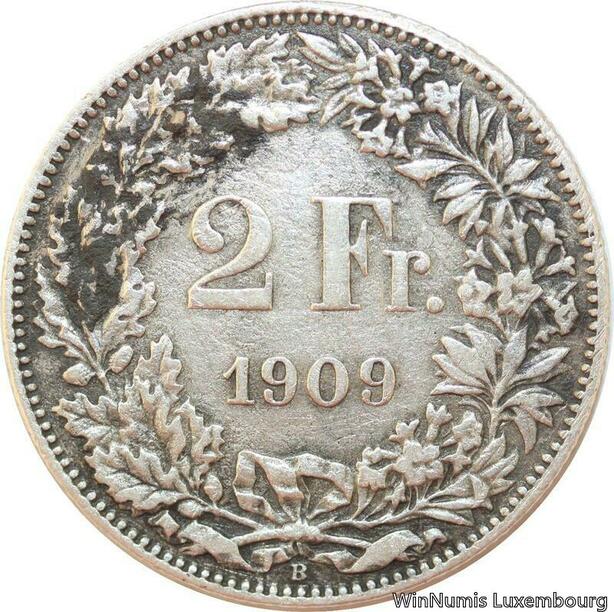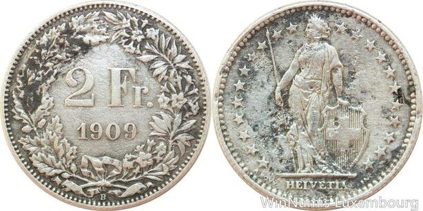 R7712 Switzerland 2 Francs Helvetia 1909 B Berne Silver -> Make offer