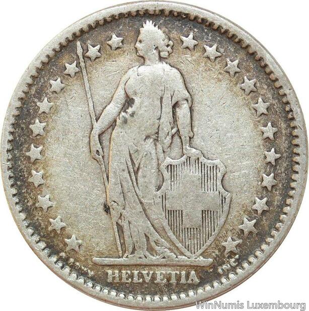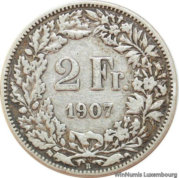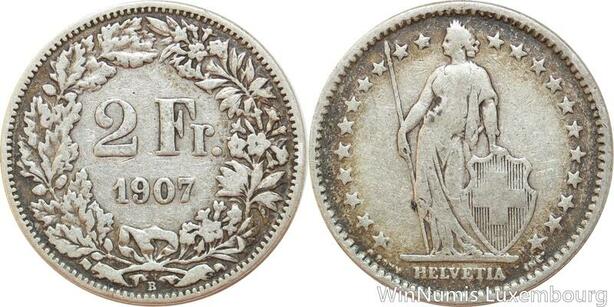 R7716 Switzerland 2 Francs Helvetia 1907 B Berne Silver -> Make offer