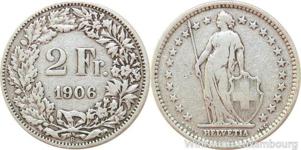 R7717 Switzerland 2 Francs Helvetia 1906 B Berne Silver -> Make offer