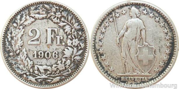 R7718 Switzerland 2 Francs Helvetia 1906 B Berne Silver -> Make offer