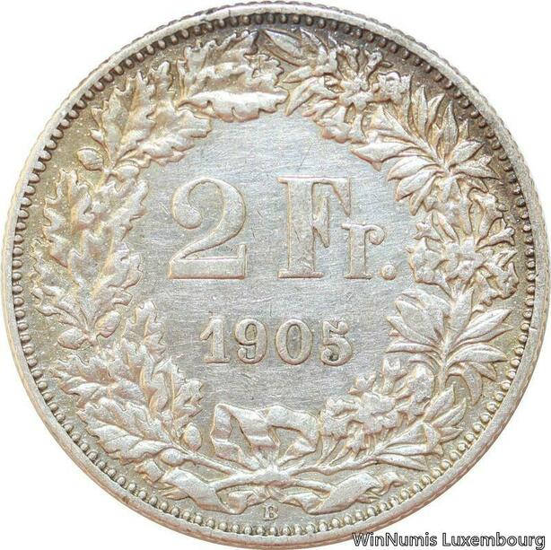 R7721 Switzerland 2 Francs Helvetia 1905 B Berne Silver AU -> Make offer