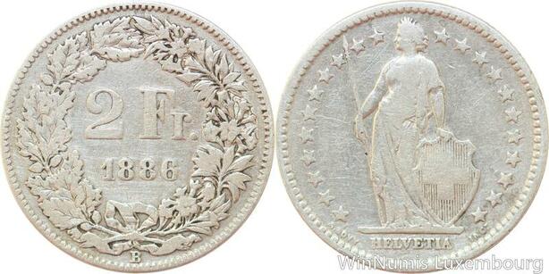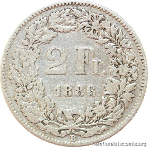 R7725 Switzerland 2 Francs Helvetia 1886 B Berne Silver -> Make offer