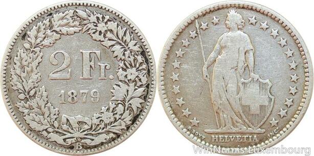 R7728 Switzerland 2 Francs Helvetia 1879 B Berne Silver -> Make offer