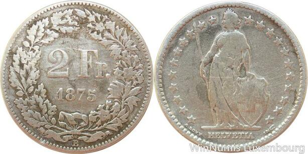 R7730 Switzerland 2 Francs Helvetia 1875 B Berne Silver -> Make offer
