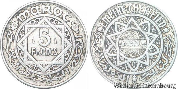 R7862 Morocco 5 Francs Mohammed V AH 1370 1951 A Paris -> Make offer