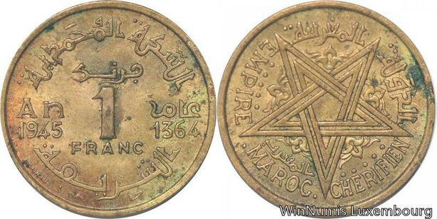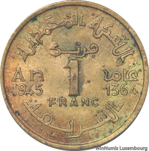 R7873 Morocco 1 Franc Mohammed V AH 1364 1945 A Paris -> Make offer