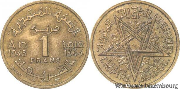 R7874 Morocco 1 Franc Mohammed V AH 1364 1945 A Paris -> Make offer
