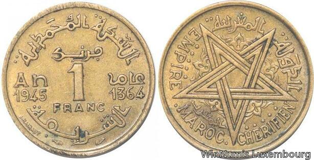 R7875 Morocco 1 Franc Mohammed V AH 1364 1945 A Paris -> Make offer
