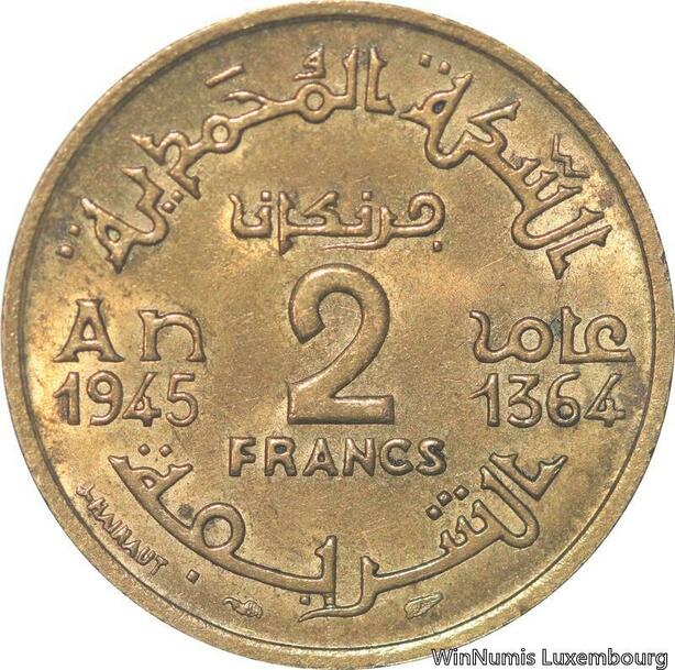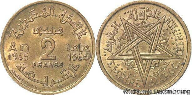 R7879 Morocco 2 Francs Mohammed V AH 1364 1945 A Paris AU -> Make offer