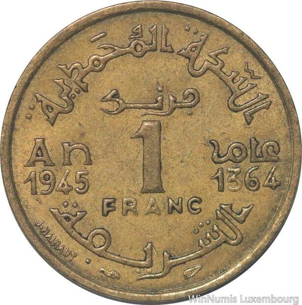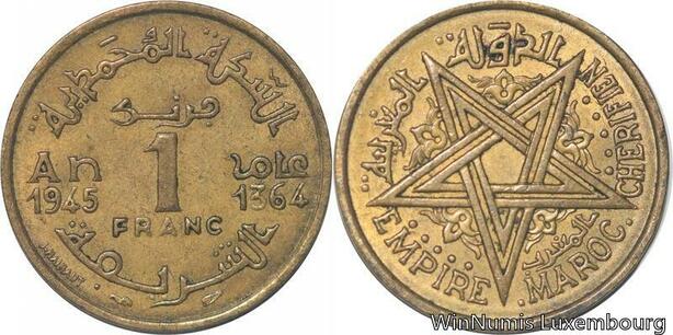 R7892 Morocco 1 Franc Mohammed V AH 1364 1945 A Paris -> Make offer