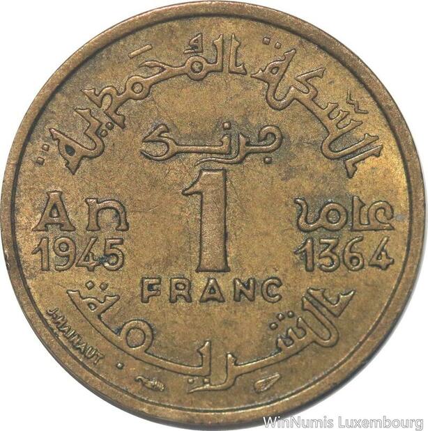 R7893 Morocco 1 Franc Mohammed V AH 1364 1945 A Paris -> Make offer