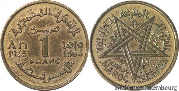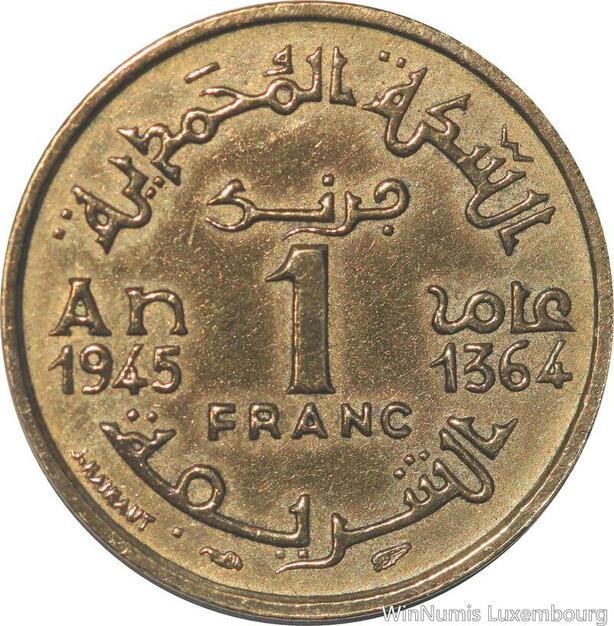 R7894 Morocco 1 Franc Mohammed V AH 1364 1945 A Paris -> Make offer