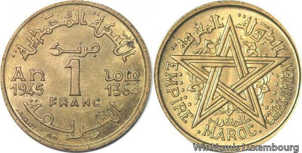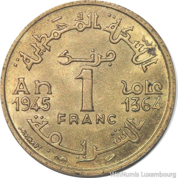 R7896 Morocco 1 Franc Mohammed V AH 1364 1945 A Paris AU++ -> Make offer